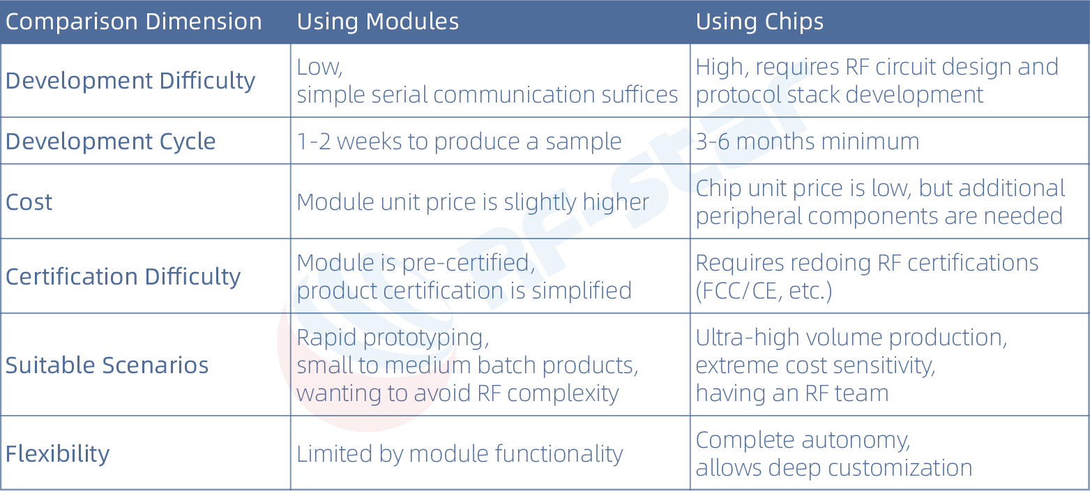 FCC、ICなどの一般的なモジュール認証では、モジュールに完全なRF回路、シールドカバー、独立した電源が含まれていることが求められます。モジュールの認証を参照できるかどうかは、地域、特定の最終製品、選択した試験機関によって異なります。スムーズな認証取得のため、RF-starは、ユーザーが認証機関に直接連絡を取り、具体的な要件を確認することを推奨しています。