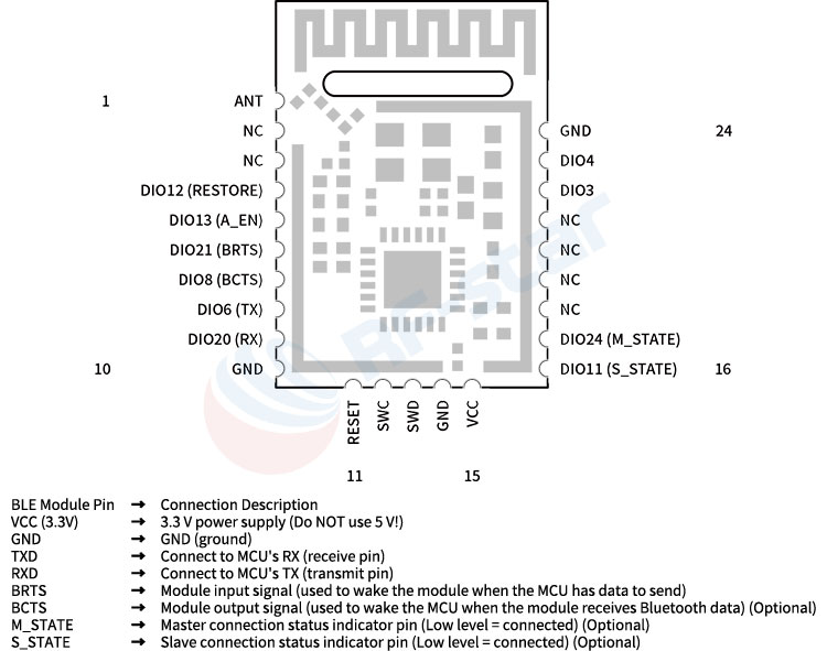 チェック1: モジュールがアドバタイジングモードになっているか確認する(STATEピンで確認できる)チェック4: アンテナは無傷ですか? モジュールは金属筐体(信号シールド)内に収納されていますか?