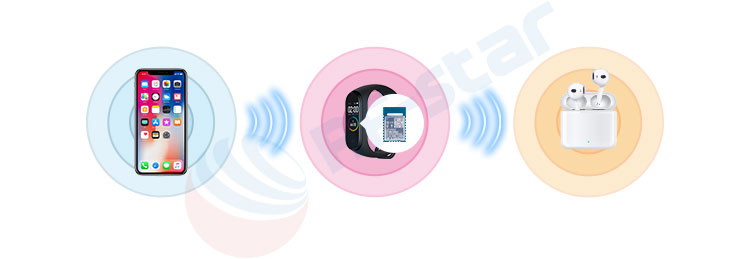 次のようなマスター機能とスレーブ機能の両方を兼ね備えたデバイス:スマートウォッチ(スレーブ:電話に接続、マスター:ヘッドフォンに接続)